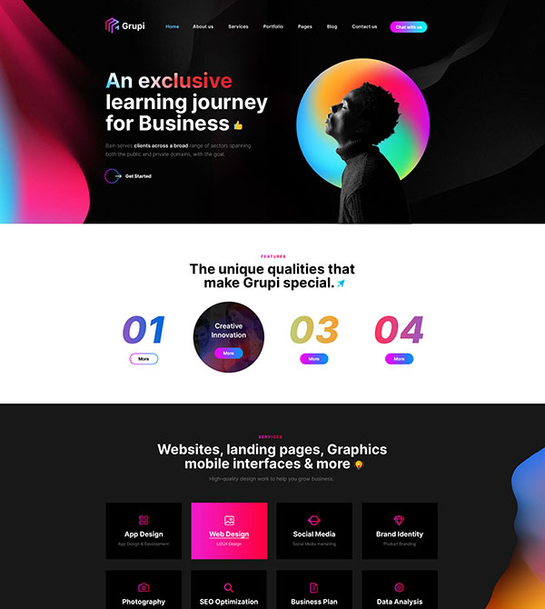 Websites, landing pages, Graphics mobile interfaces & more